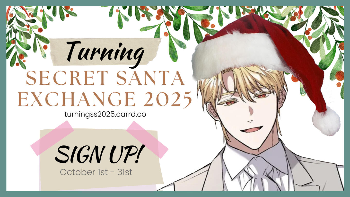 A Secret Santa Exchange is where you make a fanwork gift for someone you are assigned to and receive a gift back in return! All gifts will be submitted to AO3 under an unrevealed collection and made visible on Christmas (December 25th) so everyone gets their gifts at the same time! And we all win because we all get to enjoy more Turning fan content!Please carefully read the Step by Step Schedule below before signing up