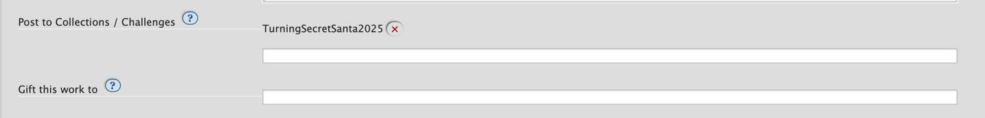 If it is art, please refer to this tutorial on how to embed images onto an AO3 work!Once you post it to the collection, the organizer will be able to see you have been a good little elf but no one else can publicly see the work yet so you can still edit and put finishing touches.Remember, your work should be submitted as a gift on AO3 to your giftee - when submitting make sure to fill out this section so your giftee can find your gift easily!